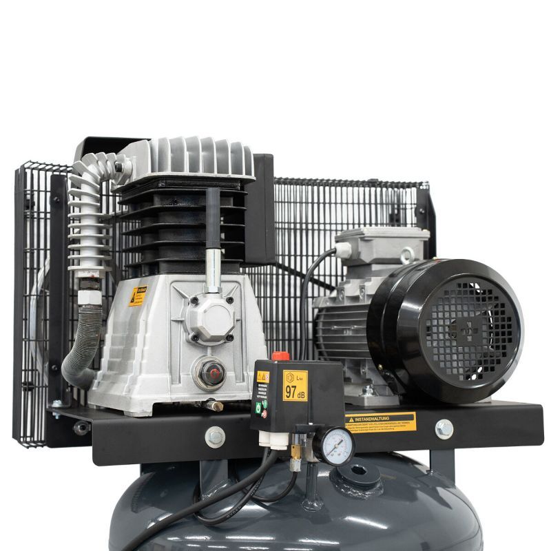Vertikalni kotao zauzima znatno manje tlocrtne površine (735 × 690 mm) u usporedbi s horizontalnim modelima iste zapremine — što je ključna prednost u radionicama s ograničenim podnim prostorom. Unatoč manjem "footprintu", kapacitet spremnika ostaje 270 litara, što osigurava veliku rezervu zraka. Jedini kompromis je da je potrebna nešto veća visina (1.830 mm), pa treba osigurati dovoljnu visinu prostora.