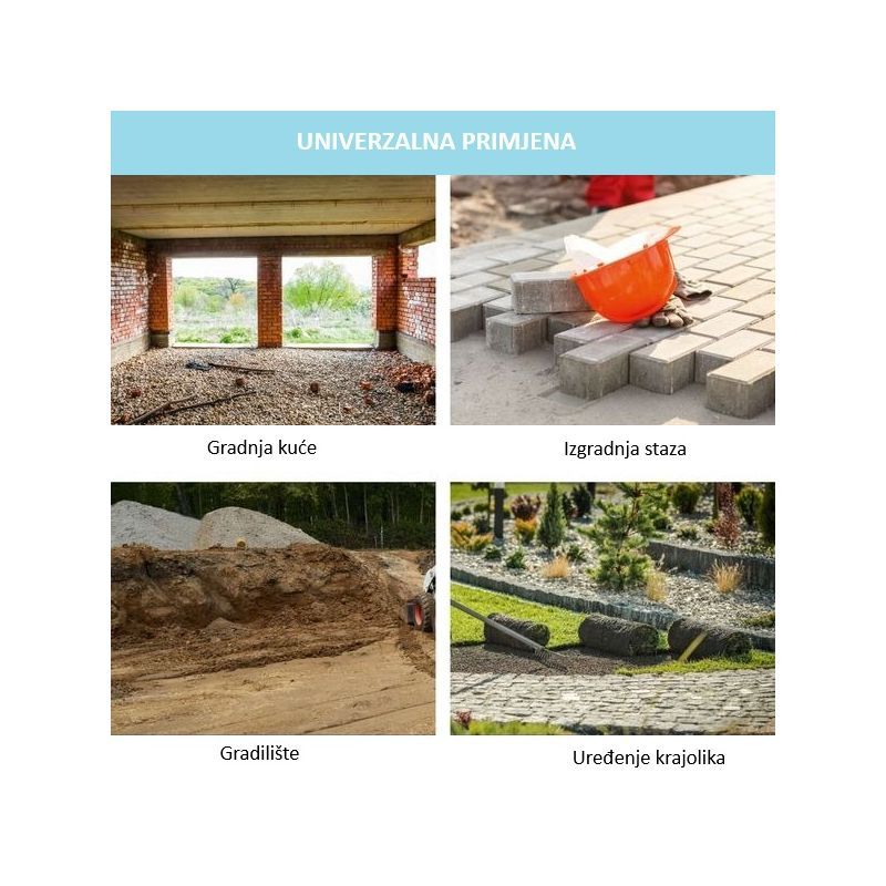 Namijenjena je za zbijanje podloge kod izrade prilaza, terasa, staza, vrtnih površina i manjih do srednjih građevinskih zahvata gdje je kritično spriječiti kasnije slijeganje. Tipično se koristi na slojevima drobljenog kamena, pijeska i podloge prije polaganja opločnika.