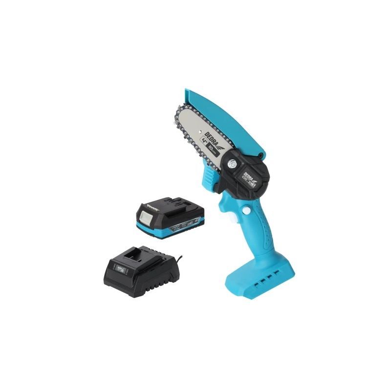 - vrtni komplet uključuje mini akumulatorsku lančanu pilu DED6984, Li‑Ion bateriju 2,0 Ah DED7032 i punjač DED7038