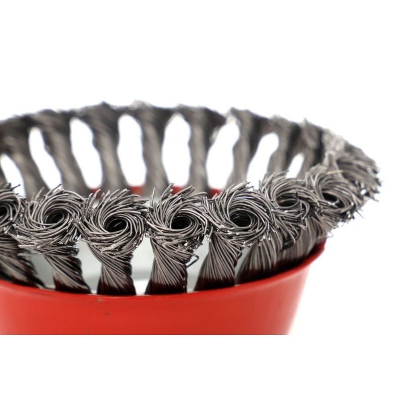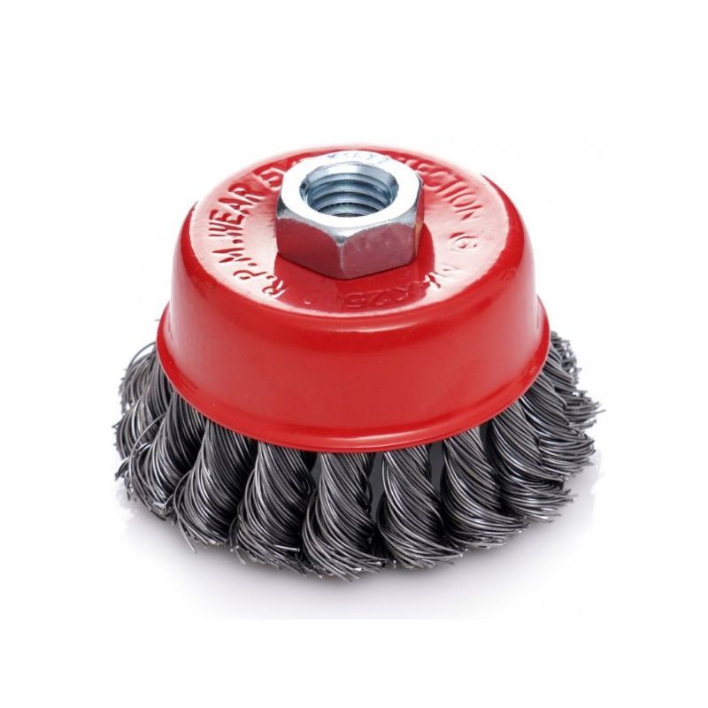 žičana četka M14 promjera 125 mm izrađena je od visokokvalitetnog kaljenog čelika i namijenjena je profesionalnoj upotrebi za čišćenje hrđe, boje, varova i drugih nečistoća s metalnih površina